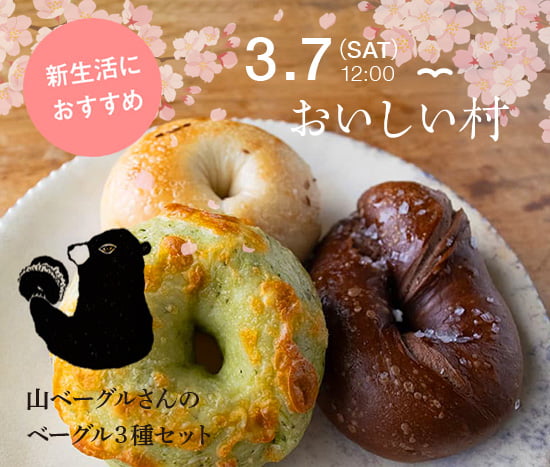 山ベーグルさんのベーグルをお届けします。なにかと忙しい春に、冷凍庫にあるととっても心強いです。これまでのセットよりも、冷凍庫に入りやすいコンパクトな3個セットです。