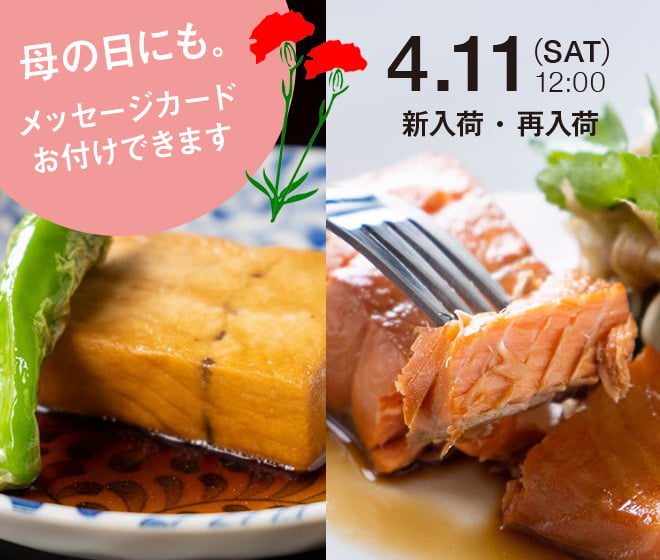 定番品のように常時の販売ではないですが、そのときあるいいものでお惣菜をお取り寄せ通販でご案内しています。大きな台所のような斉吉の工場(こうば)で添加物などは使わずに手作りでお届けします。温めるだけ、解凍するだけ。すぐにお使いいただけるようにしていますので、どうぞ食卓にお役立てください。