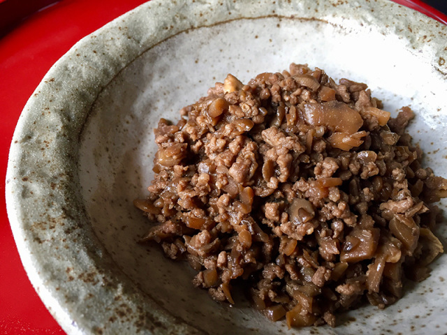 定番の鯖の味噌煮ですが胡麻を使って香り高く仕上げています。とろみのあるたれと柔らかい鯖の身を一緒にどうぞ。湯煎で温めてどうぞ。