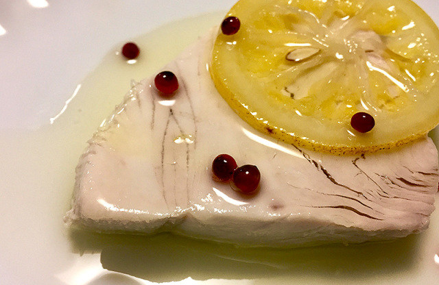 国産びんちょうまぐろをオリーブオイルでしっとりと加熱し、レモンとピンクペッパーで華やかに仕上げました。