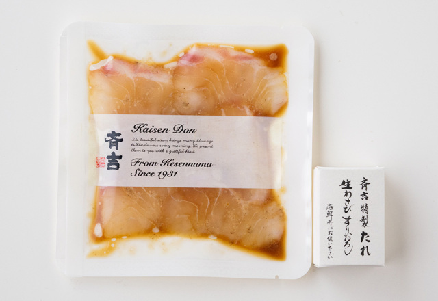 サラダにすると海鮮丼専用たれとわさびが残りますが、冷凍しておいてください。斉吉海鮮丼は白だし醤油で全体に味がついていますが、薄味なのでこれに海鮮丼専用たれを少しかけても美味しいです。