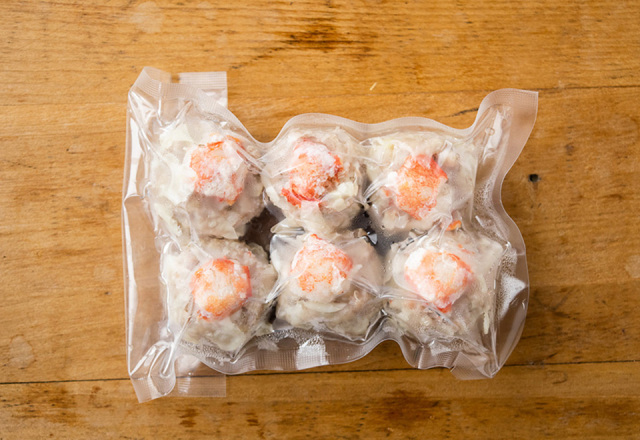 | 原材料 | 豚ひき肉(国産)、まるずわいがに(ナミビア産)、シュウマイの皮、玉ねぎ、長ネギ、片栗粉、背脂、砂糖、醤油、塩、黒胡椒、(一部に豚肉、カニ、小麦、大豆を含む) |