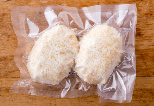 半解凍で油で揚げるか、揚げ焼きです。急ぐときは袋を開けてレンジで解凍してください。20秒くらいで様子を見てください。フライパンに油をこれくらいで揚げ焼きにします。