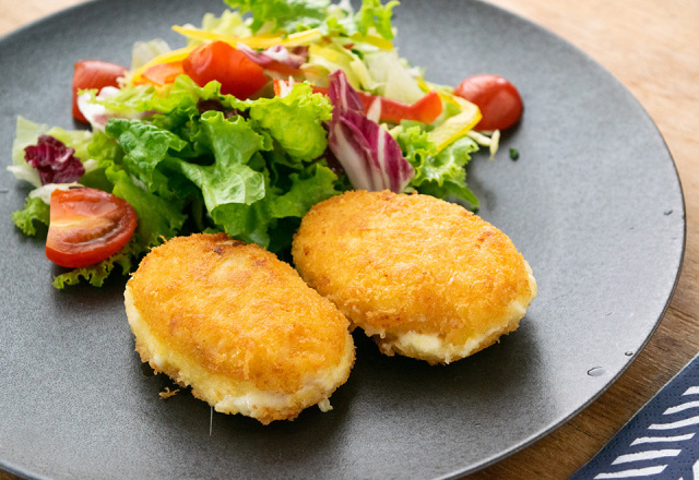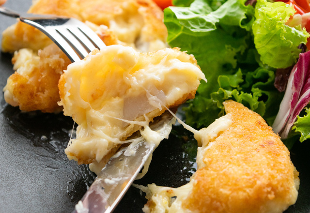 帆立ととうもろこしのクリームコロッケです。帆立はごろっと入っています。クリームコロッケの生地にはチーズも入りました。