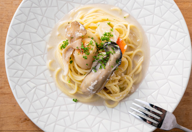 自家製の甘麹をたっぷり使った牡蠣と帆立のシチューです。小麦粉も使っていないのでさらっとしています。麹のほんのり甘い旨味で味わうシチューです。