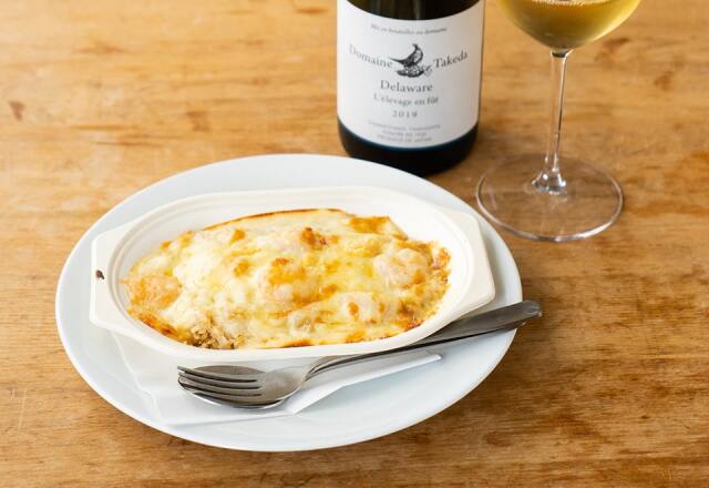 宮城県産玄米・金のいぶき、帆立と海老をドリアにしました。