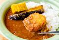 キレ良く後味の良いサラッとしたカレーにまぐろのカツレツをのせます。