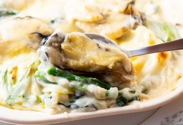 ほうれん草もたっぷり入りました。ホワイトソースにも牡蠣の旨味と香りです。