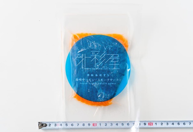 青森の海峡サーモンさんの、スライスしてあるスモークサーモンです。トラウトサーモンです。