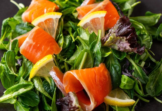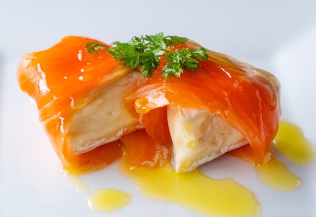 袋の中に透明なフィルムにスライスしたサーモンが並んでいます。