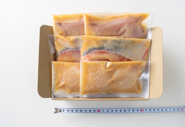 | 内容量 | めかじき1切れ、銀鮭1切れ、帆立貝柱2ケ の味噌こうじ漬け 各2パックの6パックセット |