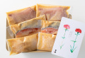 焼き方のお手紙もお付けします。袋ごと水につけて解凍した後、袋から取り出します。