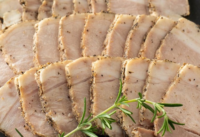 北海道のファーマーズファクトリーさんのローストポークです。塩胡椒のシンプルな味付けゆえに放牧豚の旨味が引き立ちます。