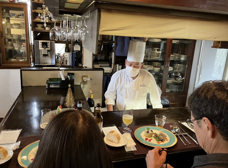 赤松シェフと奥様 お二人で温かいおもてなしをしてくださるお席が12で満席のレストランです。